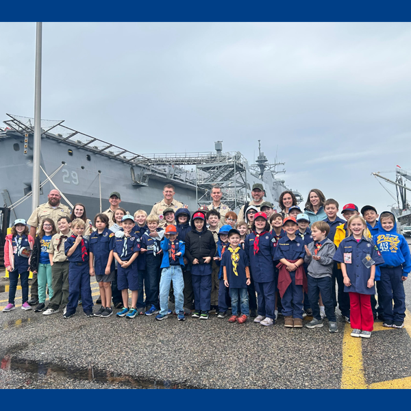 Scouts from Tidewater Council Pack 413 and Pack 901, along with members of Colonial Virginia Council Pack 89, visited the USS Richard M. McCool, an active duty amphibious assault ship.